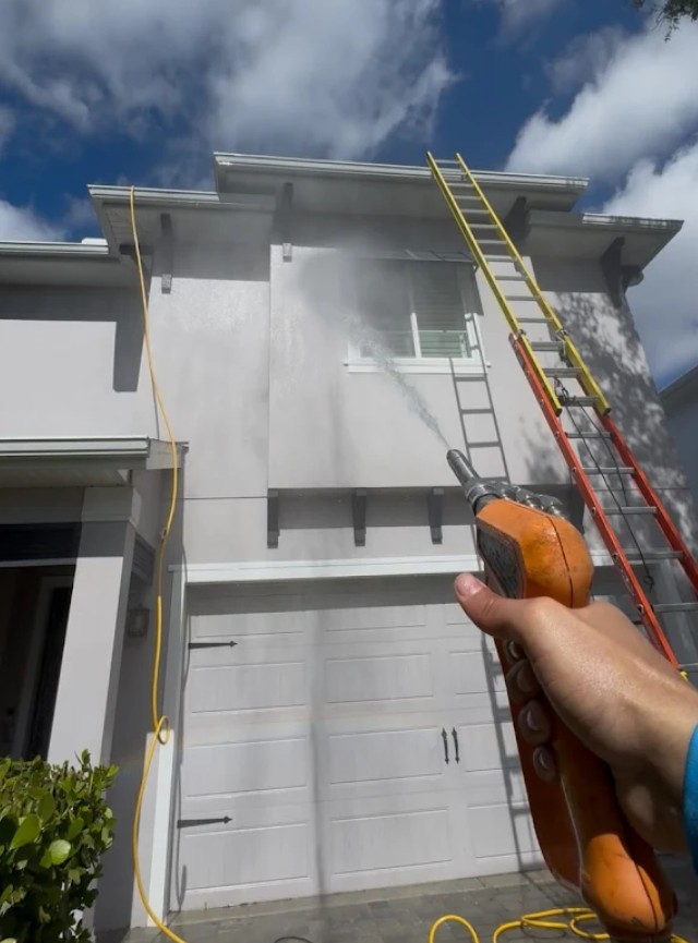 Yes. Soft washing uses low pressure combined with specialized cleaning solutions to safely remove mold, mildew, algae, and dirt without damaging siding, paint, stucco, or trim. This method is ideal for Florida homes.